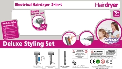 - Realistyczne efekty – suszarka z nawiewem, prostownica ze światłem i dźwiękiem.
