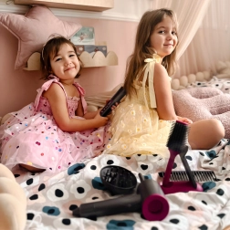 Suszarka naprawdę dmucha, więc fryzury powstają jak w salonie – bezpiecznie i z zabawą.