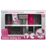 W komplecie znajdują się także praktyczne nasadki do suszarki, okrągła szczotka oraz szeroki grzebień do czesania i tworzenia fryzur. Zestaw rozwija sprawność manualną, wyobraźnię i komunikację podczas zabaw w „salon fryzjerski”.
