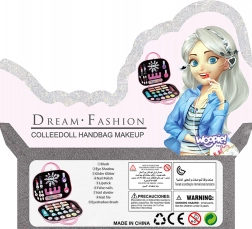 - 2 pomadki, 2 błyszczyki, 2 lakiery do paznokci, 3 aplikatory do cieni, pilnik do paznokci, separator do paznokci, paznokcie zapasowe, 2 róże, kolorowe cienie do powiek