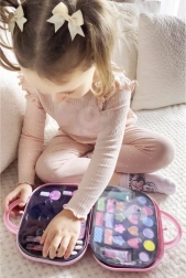 Ten zestaw kosmetyczny jest przeznaczony dla dzieci od 3 roku życia. Wszystkie produkty zostały zaprojektowane tak, aby były bezpieczne i delikatne dla młodej skóry. Lakiery do paznokci można łatwo odkleić, co eliminuje potrzebę stosowania zmywacza. Inne produkty kosmetyczne, takie jak cienie do powiek czy pomadki, łatwo zmywają się wodą. Ten zestaw wspiera kreatywność, samodzielność i rozwój umiejętności manualnych.