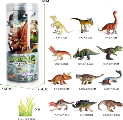 - 12 dinozaurów, 6 figurek dodatkowych (łącznie 18 szt.)