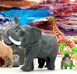 • 34 elementy, w tym zwierzęta, akcesoria (drzewka, kamienie) oraz tematyczna mapa safari.