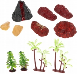 Różnorodny zestaw dinozaurów, drzew, kamieni i lawy pozwala budować dopracowane sceny i uczyć się nazw gatunków w formie zabawy.