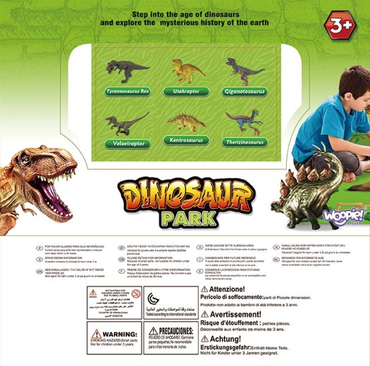 WOOPIE park dinozaurów: zestaw 23-elementowy z figurkami, matą i walizeczką. Realistyczne wykonanie, edukacyjna zabawa, łatwe przechowywanie. Od 3 lat.