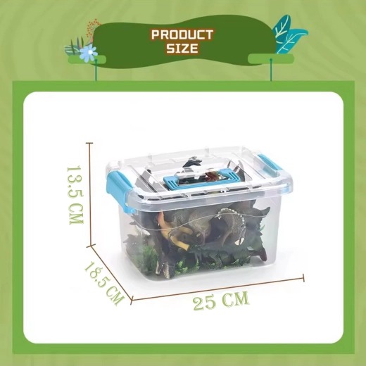 Zawartość zestawu: 12 figurek dinozaurów, 10 figurek drzew/roślin, miękka mata do zabawy, przenośna walizeczka.