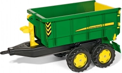 Ta realistyczna wywrotna przyczepa w kultowych barwach JOHN DEERE rozszerzy każdy zestaw małego farmera. Dzięki funkcyjnemu kiprowaniu skrzyni i otwieranej tylnej burcie dzieci łatwo załadują i rozładują piasek, kamyki lub zabawki. Dwuosiowa konstrukcja zapewnia stabilność podczas jazdy i załadunku.