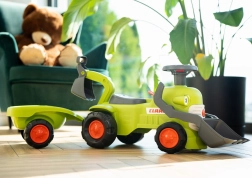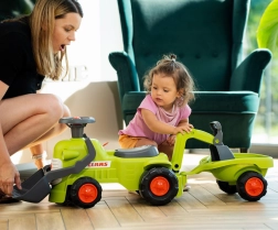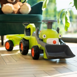 Traktor został zaprojektowany, aby być stabilnym i bezpiecznym dla najmłodszych. Dzięki solidnej konstrukcji i wysokiej jakości tworzywom sztucznym jest długotrwałym źródłem zabawy.
