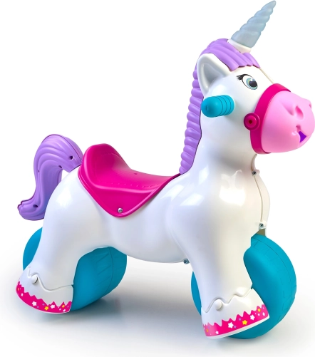 Świecący róg i radosne dźwięki pobudzają wyobraźnię, zachęcają do ruchu i rozwijają wzrok oraz słuch. Idealny towarzysz pierwszych kroków, treningu równowagi i koordynacji, zaprojektowany dla dzieci od 12 miesięcy.
