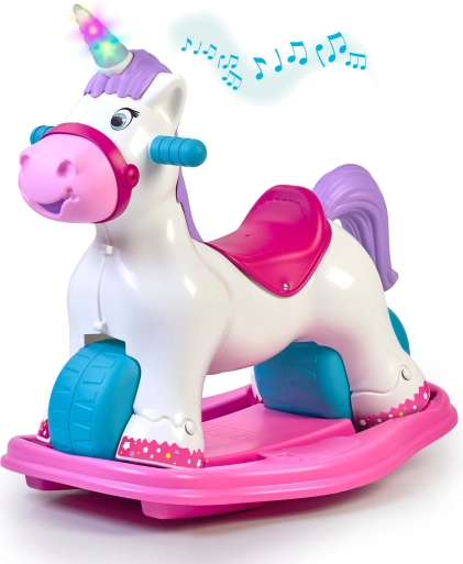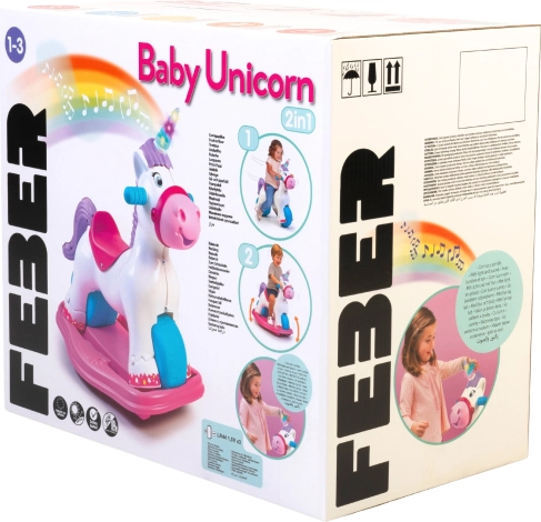 Interaktywny jednorożec FEBER rośnie wraz z Twoim dzieckiem: w mgnieniu oka zmienisz go z bujaka w jeździk. Szeroka podstawa i duże koła gwarantują bezpieczeństwo i stabilność, a ergonomiczne siedzisko i uchwyty wygodnie leżą w dłoniach i wspierają naturalną postawę ciała. Doskonale sprawdzi się do zabawy w domu i na zewnątrz.