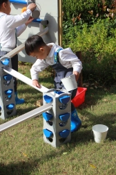 Solidna konstrukcja i proste łączenie elementów umożliwiają szybkie przebudowy i nieskończone konfiguracje. Odpowiednie do ogrodu, na taras i do kącików zabaw – idealne do zabawy sensorycznej i eksperymentalnej dla dzieci od 3 lat.