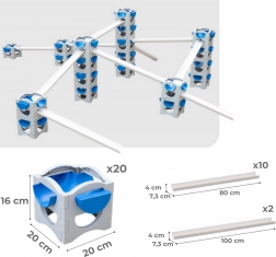 Ten modułowy tor wodny wspiera umiejętności STEM, myślenie logiczne oraz motorykę małą. Dzięki zmiennym klockom i rurkom dzieci budują własne systemy kanałów, testują różne nachylenia i obserwują, jak woda płynie, zwalnia lub napędza koła. Zabawa świetnie sprawdza się także z piaskiem, kulkami lub małymi autkami.