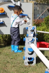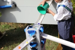 Dzieci obserwują przepływ, grawitację i prędkość wody, ćwiczą logikę i rozwiązywanie problemów poprzez zabawę.