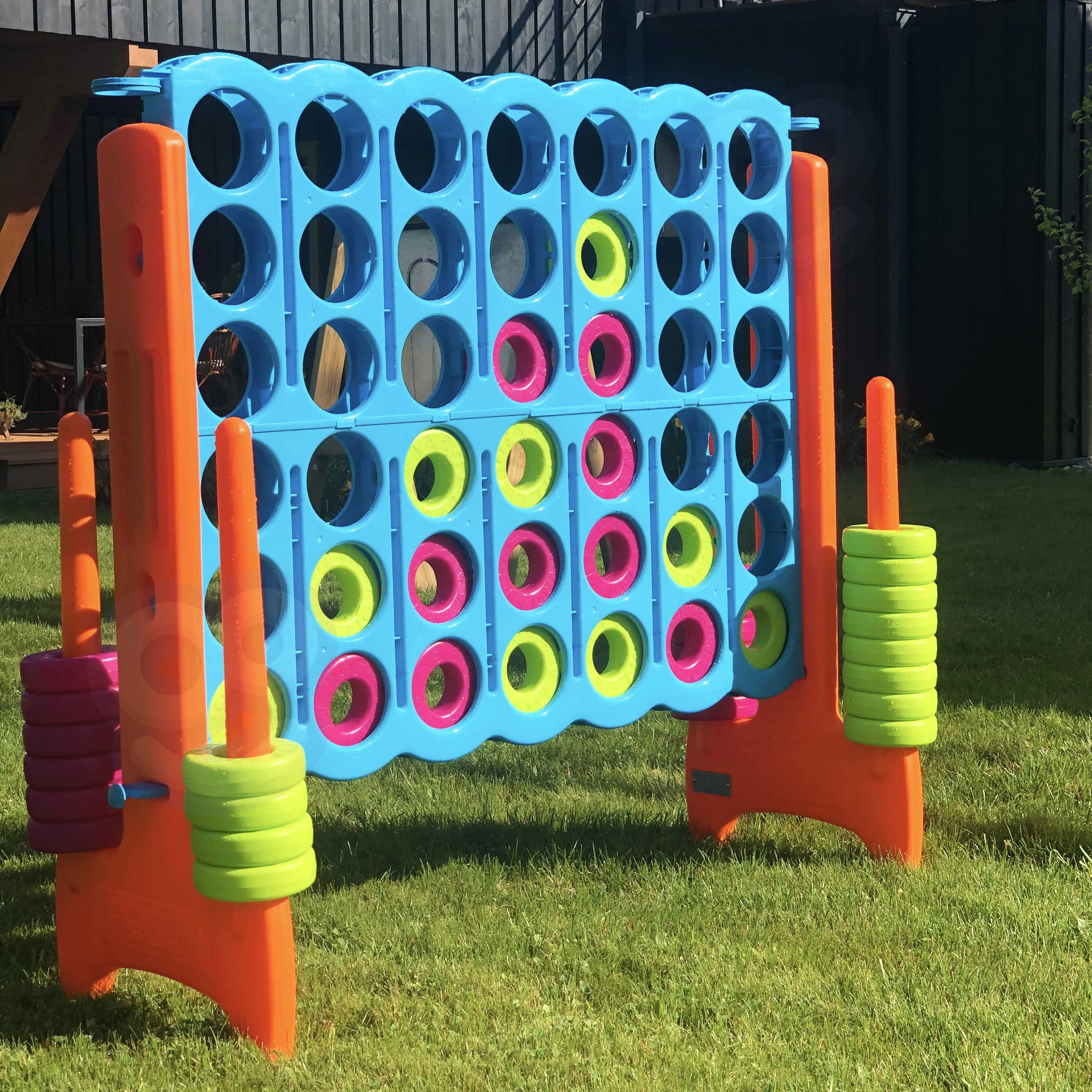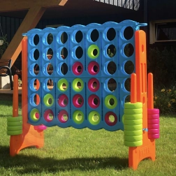 Gigantyczna wersja klasycznej gry „4 w rzędzie” ożywi każde rodzinne popołudnie. Gracze na zmianę wrzucają krążki do dużej siatki i starają się jako pierwsi ułożyć cztery w jednej linii – poziomo, pionowo lub na skos. Proste zasady, szybkie partie i mnóstwo strategii czynią z tej gry idealny wybór dla dzieci, rodziców i przyjaciół.