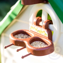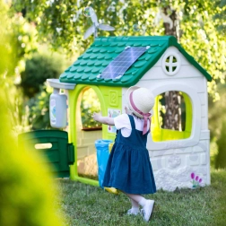 Domek uzupełniono również o karmnik i budkę dla ptaków, co wnosi naturalny akcent do każdej zabawy. Pomysłowy design obejmuje turbinę wiatrową oraz imitację panelu solarnego, które stanowią świetną okazję do nauki o energii odnawialnej. Konstrukcja jest łatwa w montażu i odporna na promieniowanie UV.