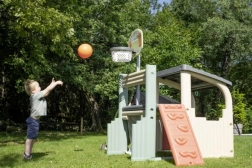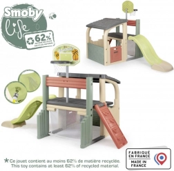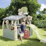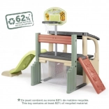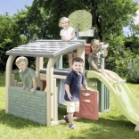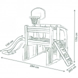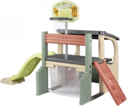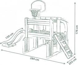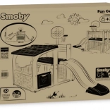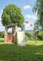Multifunkcyjne centrum zabaw SMOBY łączy sport, kreatywną zabawę i relaks. Dzieci mogą rzucać do kosza, trenować celność przy bramce piłkarskiej, wzmacniać koordynację na ściance wspinaczkowej i wyszaleć się na zjeżdżalni 150 cm. Nie brakuje zadaszonego domku z drzwiczkami na chwile wyciszenia i zabawę wyobraźni.