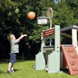 Zintegrowany kosz z wytrzymałą siatką zachęca do ruchu i rywalizacji – idealny na pierwsze sportowe kroki i zabawne pojedynki z przyjaciółmi.