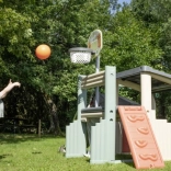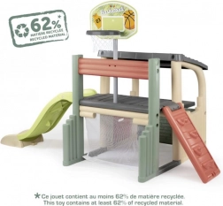 Odkryj zewnętrzne centrum zabawy SMOBY, które zapewni dzieciom godziny aktywnej rozrywki i rozwoju umiejętności. Łączy zjeżdżalnię, kosz do koszykówki, bramkę do piłki nożnej oraz ściankę wspinaczkową w jednym stabilnym zestawie. Trwałe materiały z ochroną ANTI-UV gwarantują długotrwałą żywotność kolorów i łatwą pielęgnację, dlatego idealnie sprawdza się w ogrodzie i na podwórku.