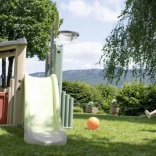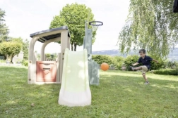 Elementy wspinaczkowe i zjeżdżalnia o długości 150 cm rozwijają równowagę, siłę i motorykę. Dzieci łatwo wchodzą i z radością zjeżdżają w dół.