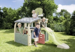 Domek z drzwiczkami oferuje spokojne miejsce na odpoczynek, zabawę w chowanego i scenki z dziecięcego świata – pod dachem, w cieniu i bezpiecznie przed słońcem.