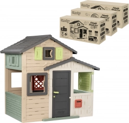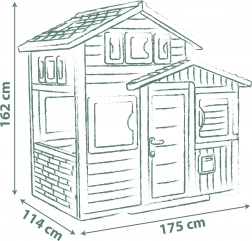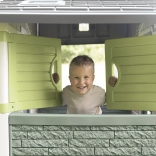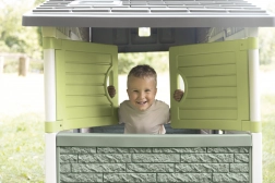 Dzieci mogą bawić się w przestronnym domku o wysokości ponad 1,5 metra, który zawiera otwierane okna, drzwi z wizjerem i skrzynkę pocztową. Stonowane kolory w naturalnych odcieniach pasują do każdego ogrodu.