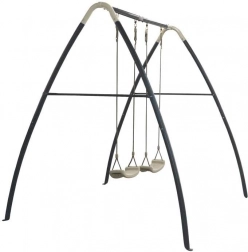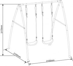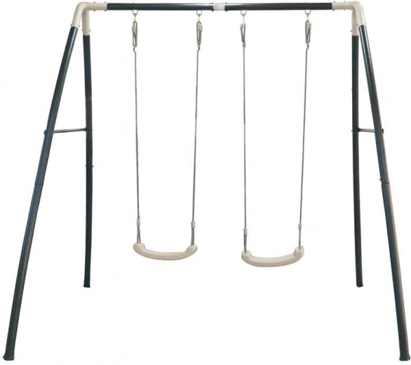 Wytrzymała i stabilna metalowa huśtawka do użytku ogrodowego, wyposażona w dwa siedziska i kotwy do solidnego mocowania. Idealny wybór dla bezpiecznej i radosnej zabawy dzieci.