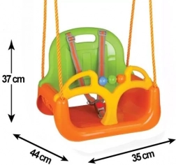 Huśtawka 3w1 to świetny wybór dla rodziców, którzy szukają bezpiecznego i długotrwałego rozwiązania do zabawy w ogrodzie i w domu. Dzięki modułowemu systemowi można łatwo zdjąć oparcie i przednią barierkę na nogi, aby dopasować siedzisko do wieku i umiejętności dziecka. Zintegrowany pas trzyma małego pasażera pewnie i wygodnie, a solidne tworzywo bez ostrych krawędzi zapewnia bezpieczeństwo i łatwe czyszczenie.