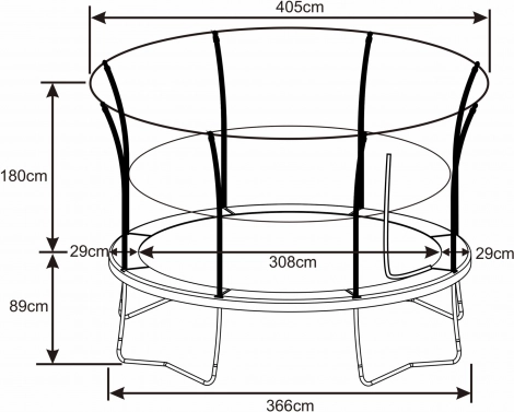 Solidna rama z ocynkowanej stali jest odporna na korozję, a dołączone kotwy utrzymują trampolinę stabilnie nawet przy intensywnym użytkowaniu.