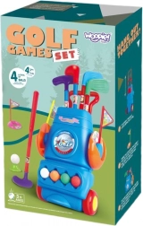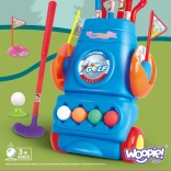 Dziecięcy zestaw golfowy Woopie to doskonały sposób na spędzanie czasu nie tylko w ogrodzie, ale także w domu. Produkt jest odpowiedni dla dzieci powyżej 3 lat i zawiera 4 kije golfowe, 4 piłeczki w różnych kolorach oraz dwa dołki z flagami. Wyposażony w praktyczne kółka dla wygodnego transportu.