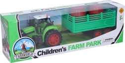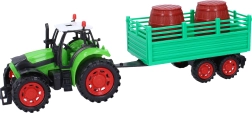 Ten realistyczny traktor z odłączaną przyczepą to świetny wybór dla małych miłośników maszyn rolniczych. Napęd sprężynowy gwarantuje płynny ruch bez konieczności użycia baterii i wspiera rozwój motoryki małej oraz wyobraźni.