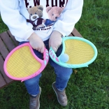 Paletki i piłki wykonane są z lekkich i wytrzymałych materiałów, które zapewniają bezpieczeństwo dzieci podczas zabawy.