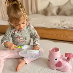Wyrzutnia w kształcie słonika wybija dysk w powietrze – złap go do siatki, zanim spadnie. Świetny trening refleksu i koordynacji.