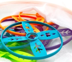 - 2× siatka do łapania, 1× gogle ochronne z osłoną, 8× dysk, 1× wyrzutnia (słoń)