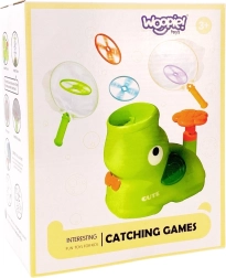 Zabawna gra zręcznościowa WOOPIE „Złap frisbee” dostarcza pełnej akcji rodzinnej rozrywki dla małych i dużych. Użyj uroczej „słoniej” katapultowej wyrzutni, aby posłać kolorowe dyski w górę i spróbuj je złapać do siatki. Gra rozwija małą motorykę, koordynację oko–ręka oraz koncentrację. W zestawie znajdują się gogle ochronne z osłoną dla bezpieczniejszej zabawy, a wszystko jest gotowe do szybkiego startu.