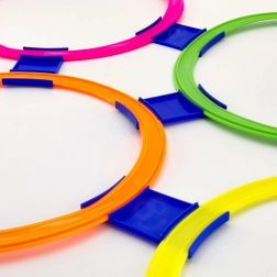 Zawiera 10 łączonych obręczy, które można dowolnie zmontować w różne konfiguracje do gry 'Klasy'.
