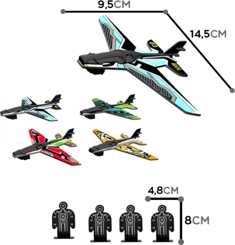 - wyrzutnia, 4 piankowe samoloty, 4 cele
