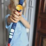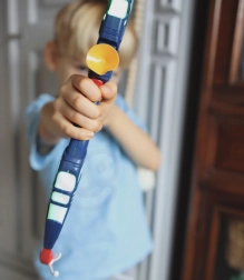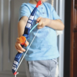 W zestawie znajduje się praktyczny kołczan z paskiem do szybkiego przeładowywania i łatwego przenoszenia strzał. Przyssawki pewnie trzymają się gładkich powierzchni i delikatnie się odklejają, dzięki czemu dzieci mogą ćwiczyć celność i koordynację w domu i na zewnątrz. Wyrusz w przygodę i rozwijaj małą motorykę w formie zabawy.