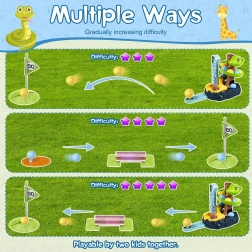- Proste zasady, mnóstwo zabawy: wypuść, wyceluj, pokonaj przeszkody i traf do dołka