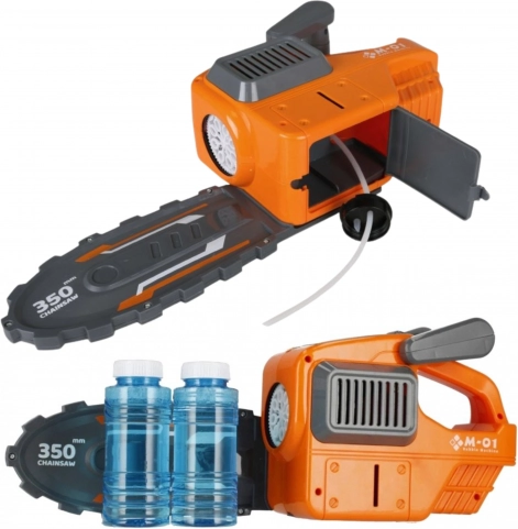 Szybka metamorfoza z wyglądu piły na stylowy generator baniek. Jedna zabawka, dwa atrakcyjne sposoby zabawy.