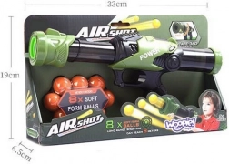 - 1× pistolet/wystrzeliwacz, 8× piankowa piłeczka