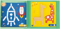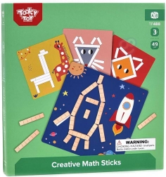 W komplecie znajduje się 12 dwustronnych kart z zadaniami o różnym poziomie trudności oraz 36 magnetycznych patyczków o różnych długościach. Dzieci mogą układać według wzorów lub tworzyć własne pomysły – zabawa, która pobudza kreatywność i koncentrację, a jednocześnie wspiera wczesne umiejętności matematyczne.
