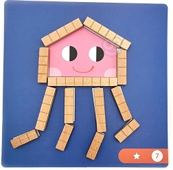 Ten drewniany, magnetyczny zestaw łączy zabawę i naukę. Dzieci układają różne magnetyczne patyczki na kolorowych szablonach ze zwierzątkami i kształtami, trenując wyobraźnię przestrzenną, koordynację ręka–oko oraz rozpoznawanie kolorów. Magnetyczne pudełko utrzymuje elementy i obrazki na miejscu, dzięki czemu zestaw świetnie sprawdza się w domu i w podróży.