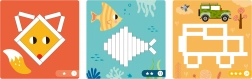 Zestaw w naturalny sposób rozwija percepcję przestrzenną, rozpoznawanie kolorów i małą motorykę dzięki pracy z patyczkami o różnych długościach.