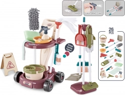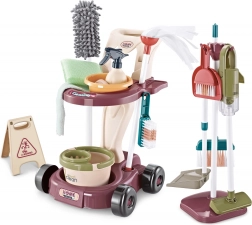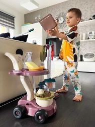 Ten fioletowy wózek do sprzątania zachęca dzieci do kreatywnej zabawy i rozwija ich wyobraźnię oraz koordynację.