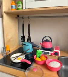 Dzięki kuchennemu zestawowi od Woopie dzieci mogą zanurzyć się w świecie kulinarnych przygód. Zabawka jest przeznaczona dla dzieci od 3. roku życia i zawiera różne akcesoria kuchenne, takie jak talerze, miska, czajnik i patelnia z pokrywką, co zapewnia godziny zabawy. Dzieci mogą wymyślać własne przepisy i tworzyć wyimaginowane potrawy, co świetnie wspiera rozwój ich wyobraźni oraz współpracy podczas zabawy z innymi dziećmi.