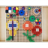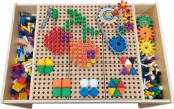 Dzięki kołom zębatym i łańcuchowi dzieci rozumieją zasady ruchu i zależności przyczynowo-skutkowe. 128 kołeczków, 128 śrubek i 64 kształty geometryczne pobudzają kreatywność i małą motorykę.