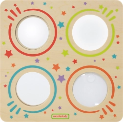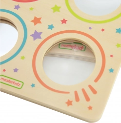 Odkryj świat optyki w formie zabawy z drewnianą tablicą MASTERKIDZ. Cztery okrągłe elementy – lustro wypukłe, lustro wklęsłe, lustro płaskie oraz soczewka powiększająca – oferują dzieciom wizualne eksperymenty, wspierają ciekawość, samoświadomość i rozwój sensoryczny. Solidne drewniane wykonanie jest trwałe i przyjazne dla przyrody.