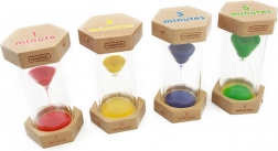 Zestaw klepsydr MASTERKIDZ to idealna pomoc dla przedszkoli, szkół i do nauki w domu. Cztery klepsydry o różnym czasie przesypu jasno pokazują dzieciom, jak upływa czas, i pomagają zrozumieć podstawowe pojęcia, takie jak sekundy i minuty. Kolorowy piasek i prosty mechanizm wspierają samodzielność oraz naturalne postrzeganie czasu.