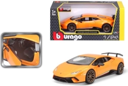 Uzupełnij swoją kolekcję o licencowany metalowy model BBURAGO 1:24 LAMBORGHINI Huracán Performante w pomarańczowym kolorze. Zachwyca szczegółowym wykonaniem, otwieranymi drzwiami i gumowymi oponami. Idealny dla kolekcjonerów i dzieci od 3 lat, dostarczany w pudełku z okienkiem.