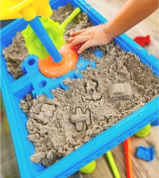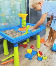 Dzięki dwóm przegrodom stolik umożliwia zabawę zarówno z wodą, jak i piaskiem jednocześnie, co oferuje różnorodne możliwości zabawy.